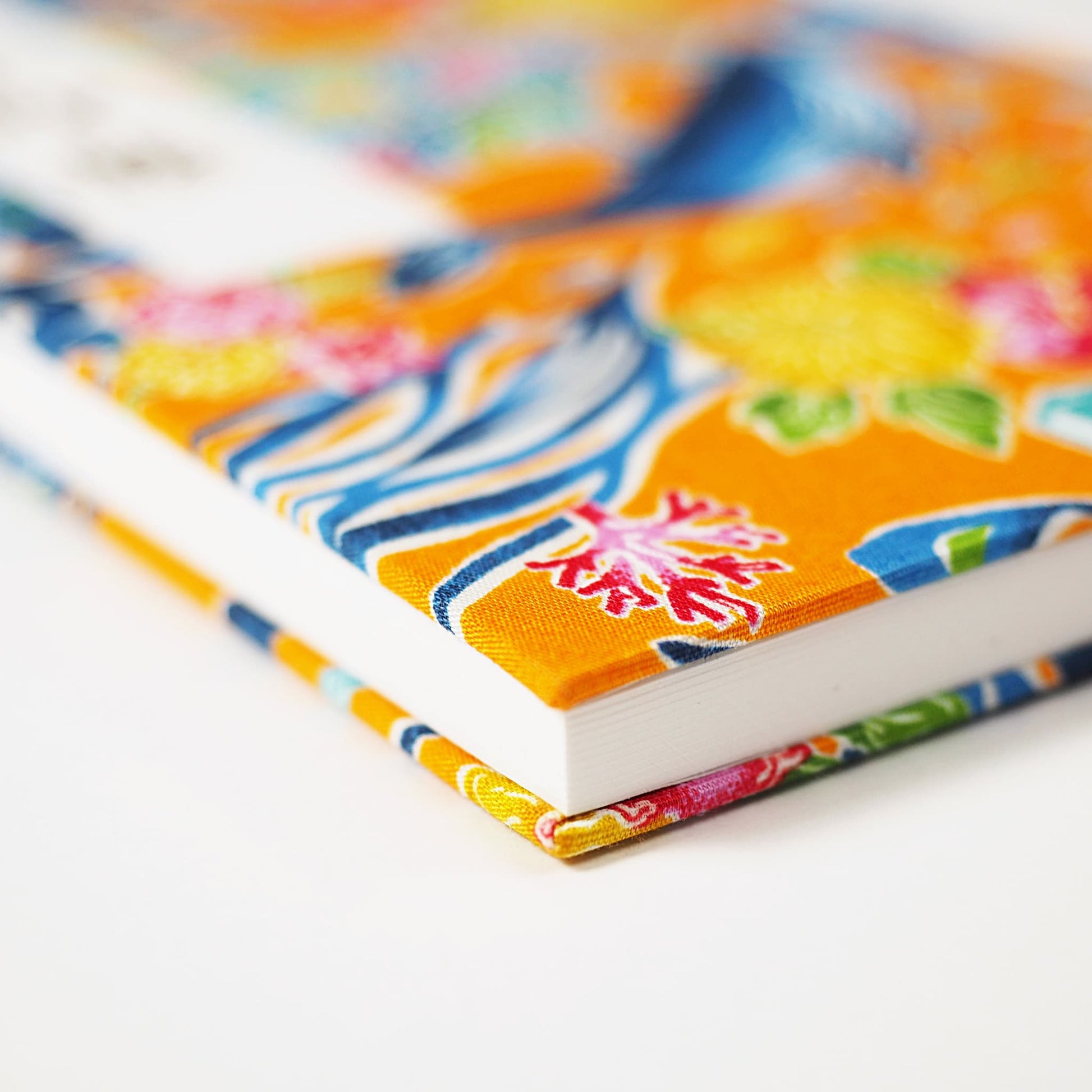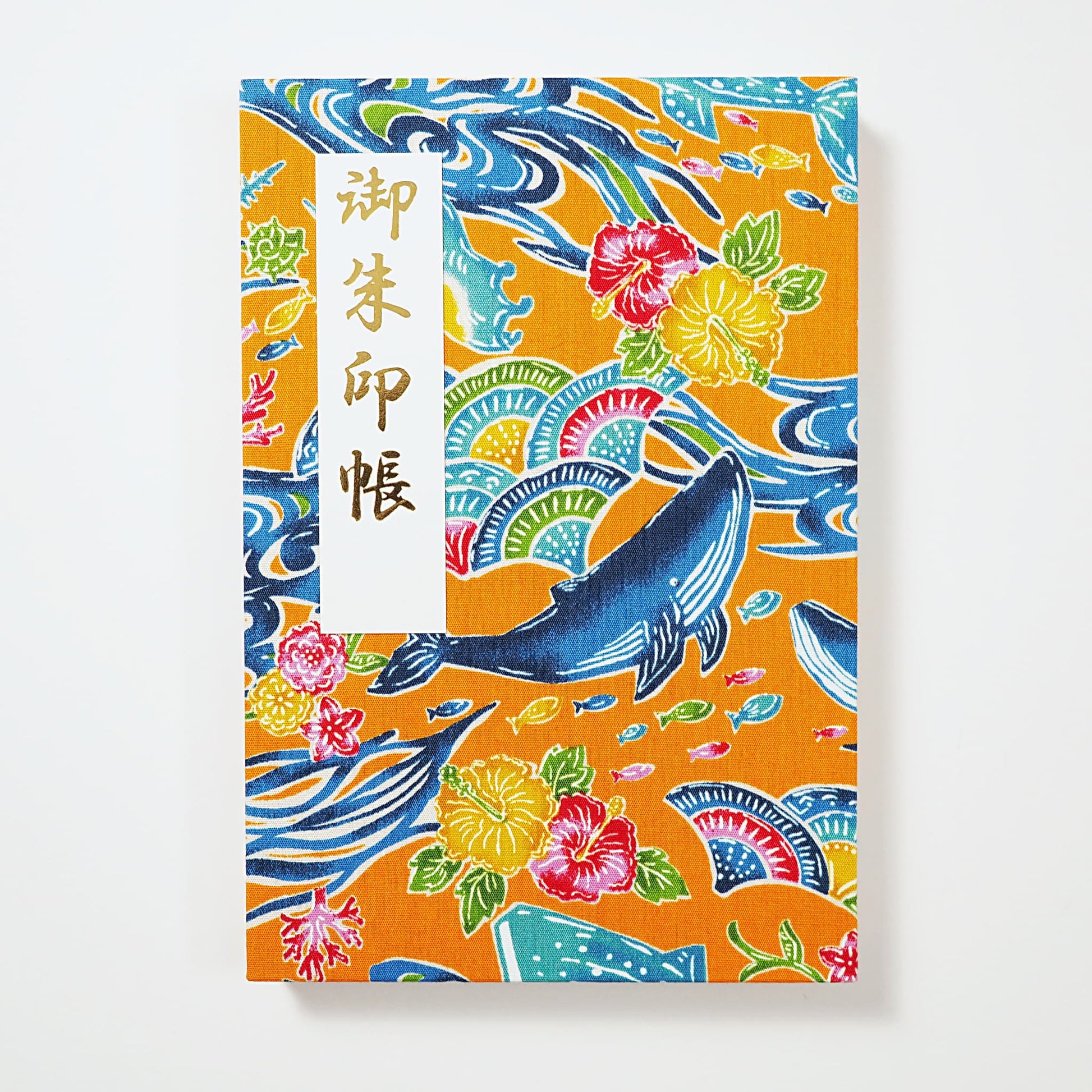 ジンベエザメやクジラ、色とりどりの熱帯魚が泳ぐ、海を描いた御朱印帳です。