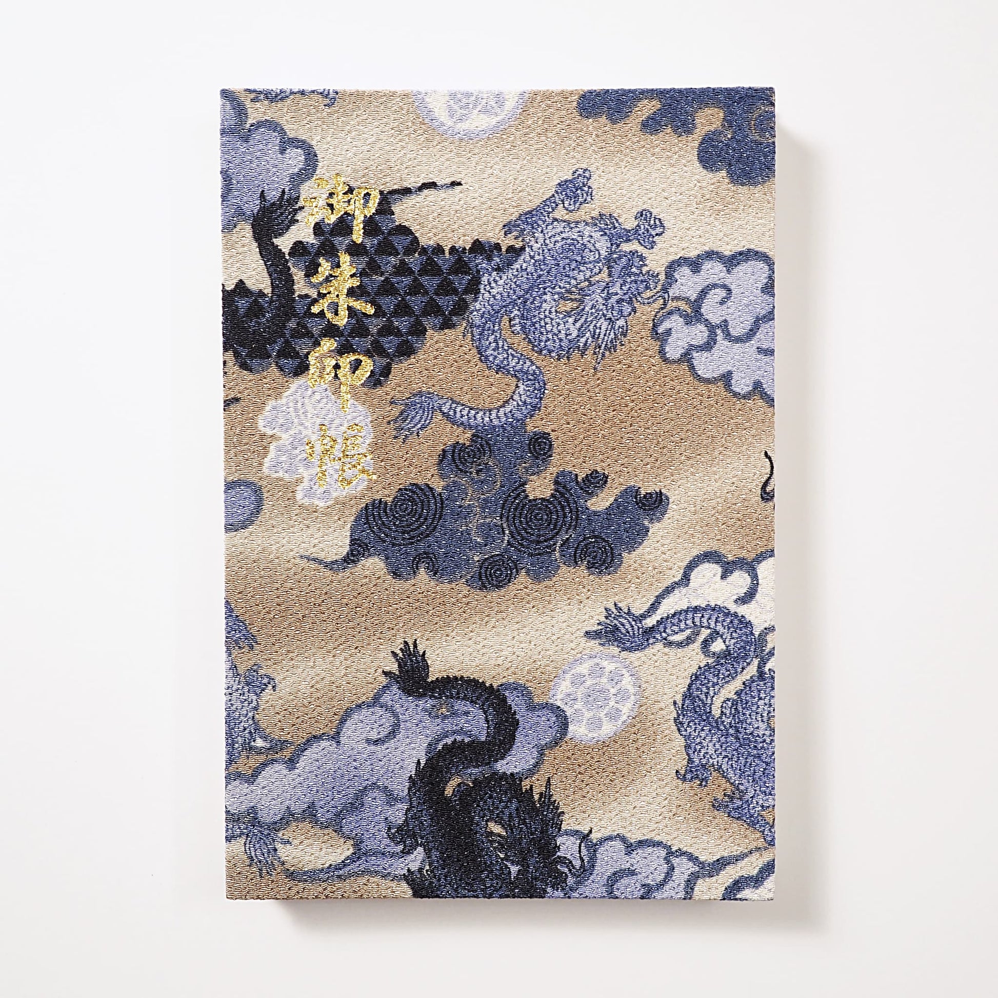 ちりめん素材に龍が描かれた、力強い印象の御朱印帳です。