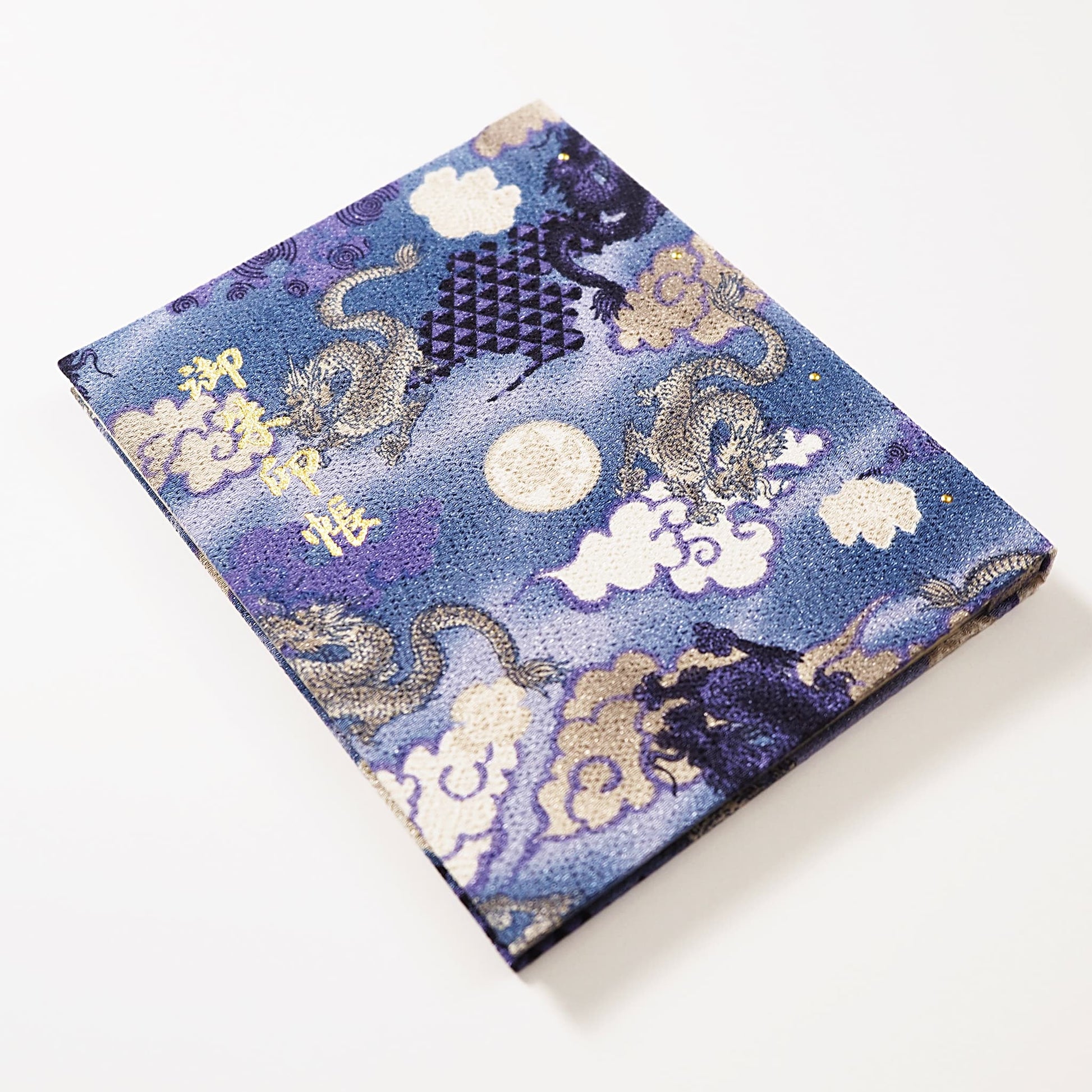 ちりめん素材に龍が描かれた、力強い印象の御朱印帳です。