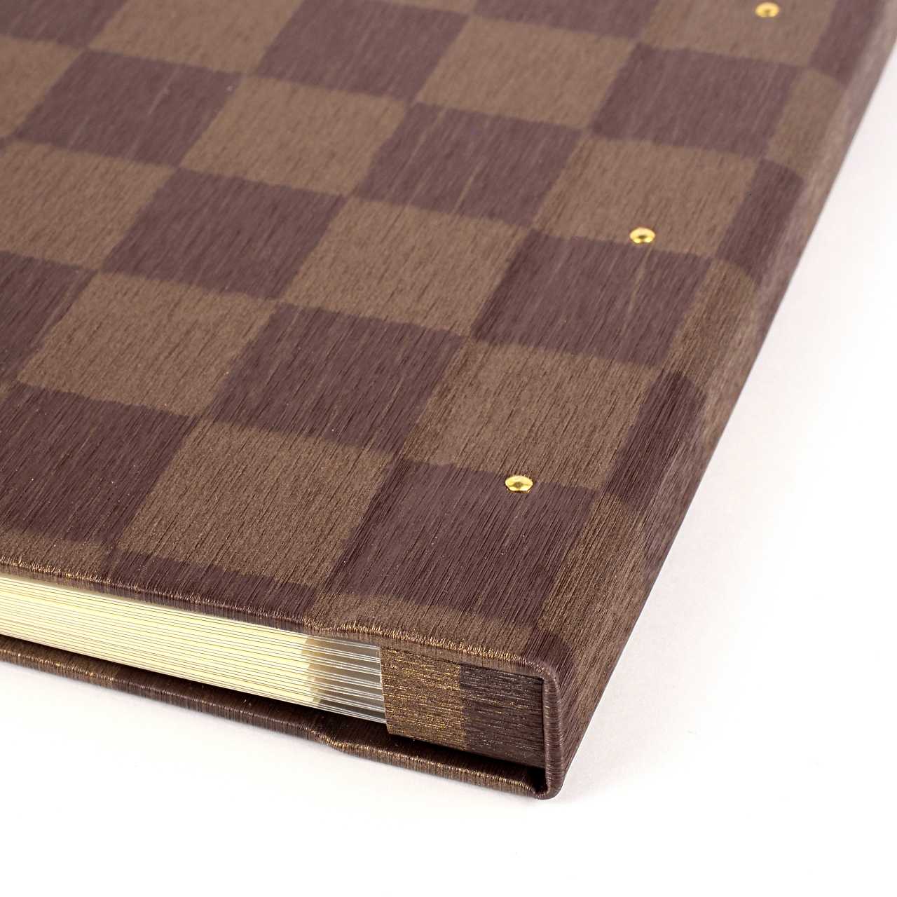 温もりある琥珀色が特徴の、トーンの異なる茶と茶の市松模様が織り成すコントラストから、 和と洋両方のテイストを味わうことが出来る贅沢な一冊です。 琥珀は、その深みと輝きで古来より宝石としても珍重されました。 使い込むごとにさらに深い味わいを増していくでしょう。