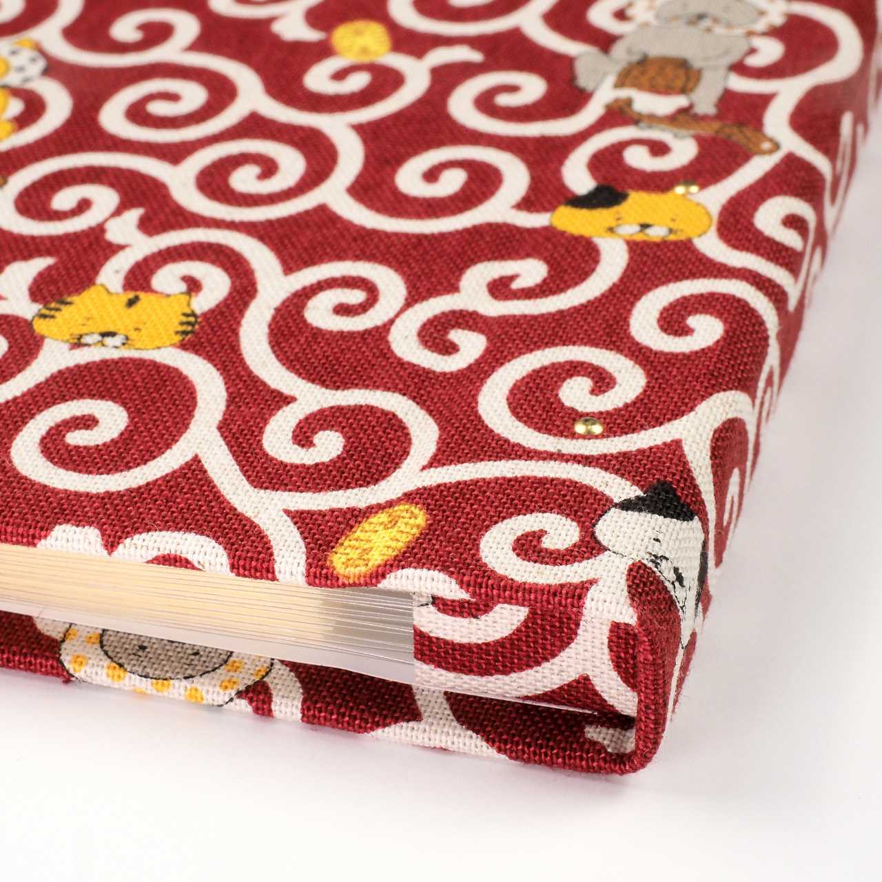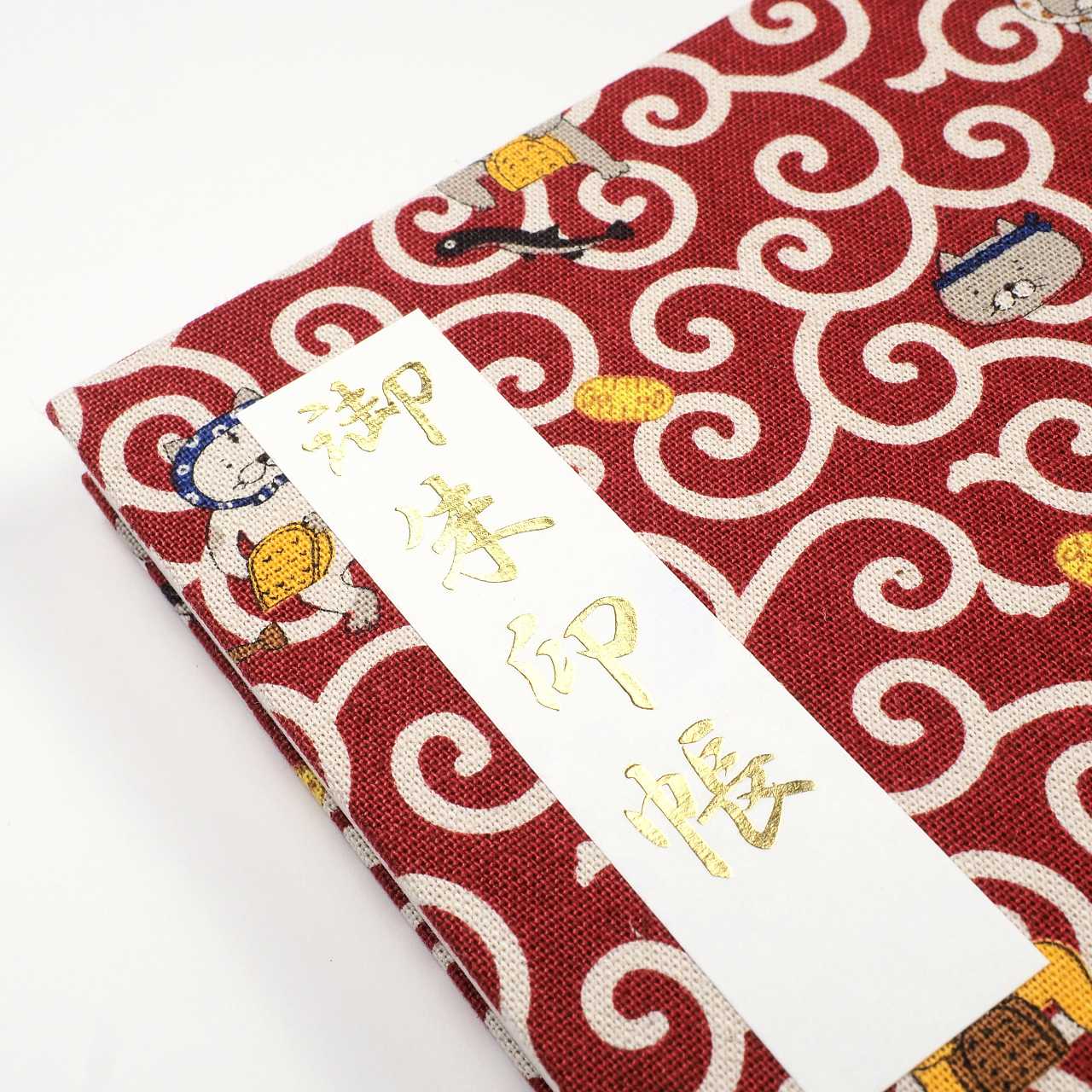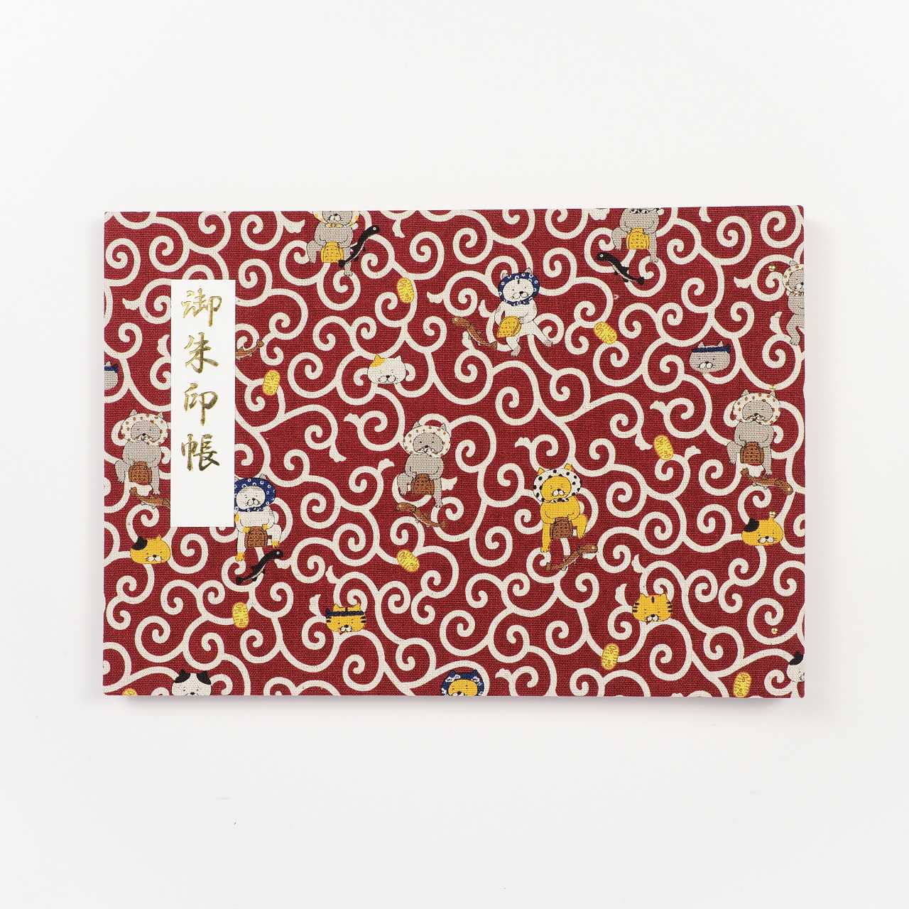 御朱印ホルダー見開きサイズ 遊 ねこまいり 唐草猫 えんじ