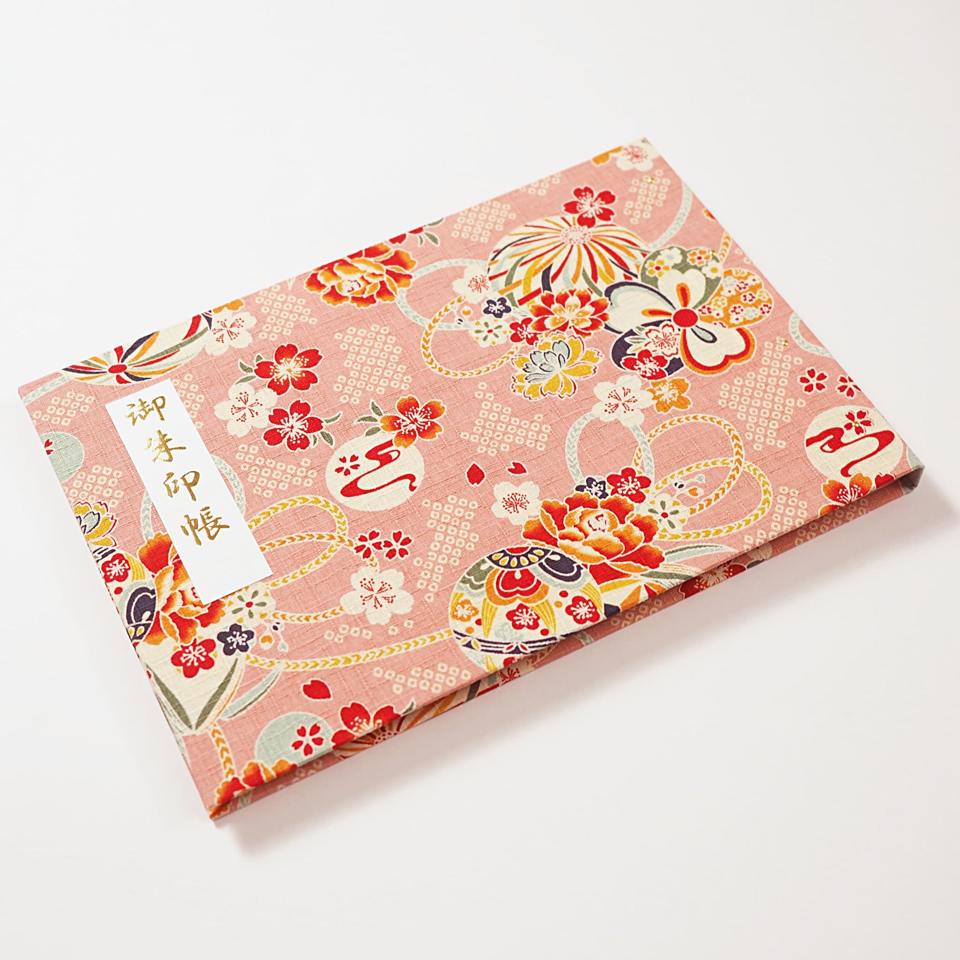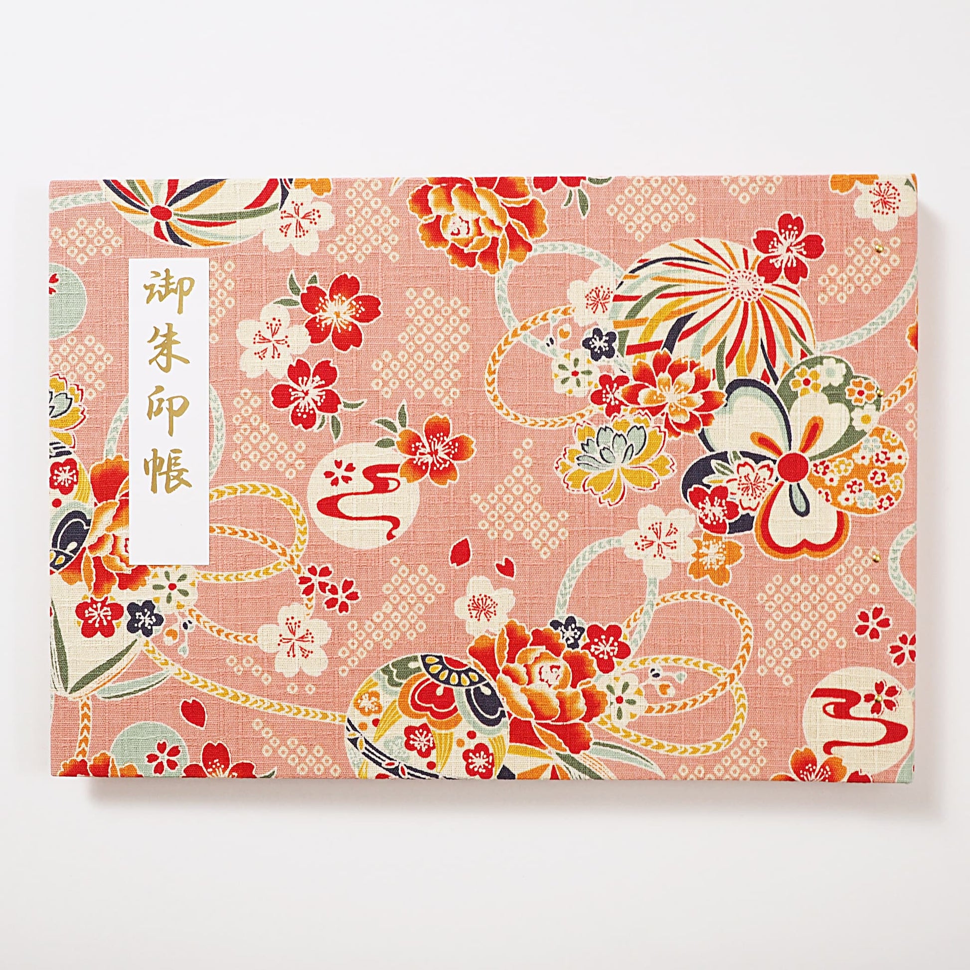 組紐に毬、四季を彩る和の花々など、伝統的な和柄を贅沢にあしらった御朱印帳です。