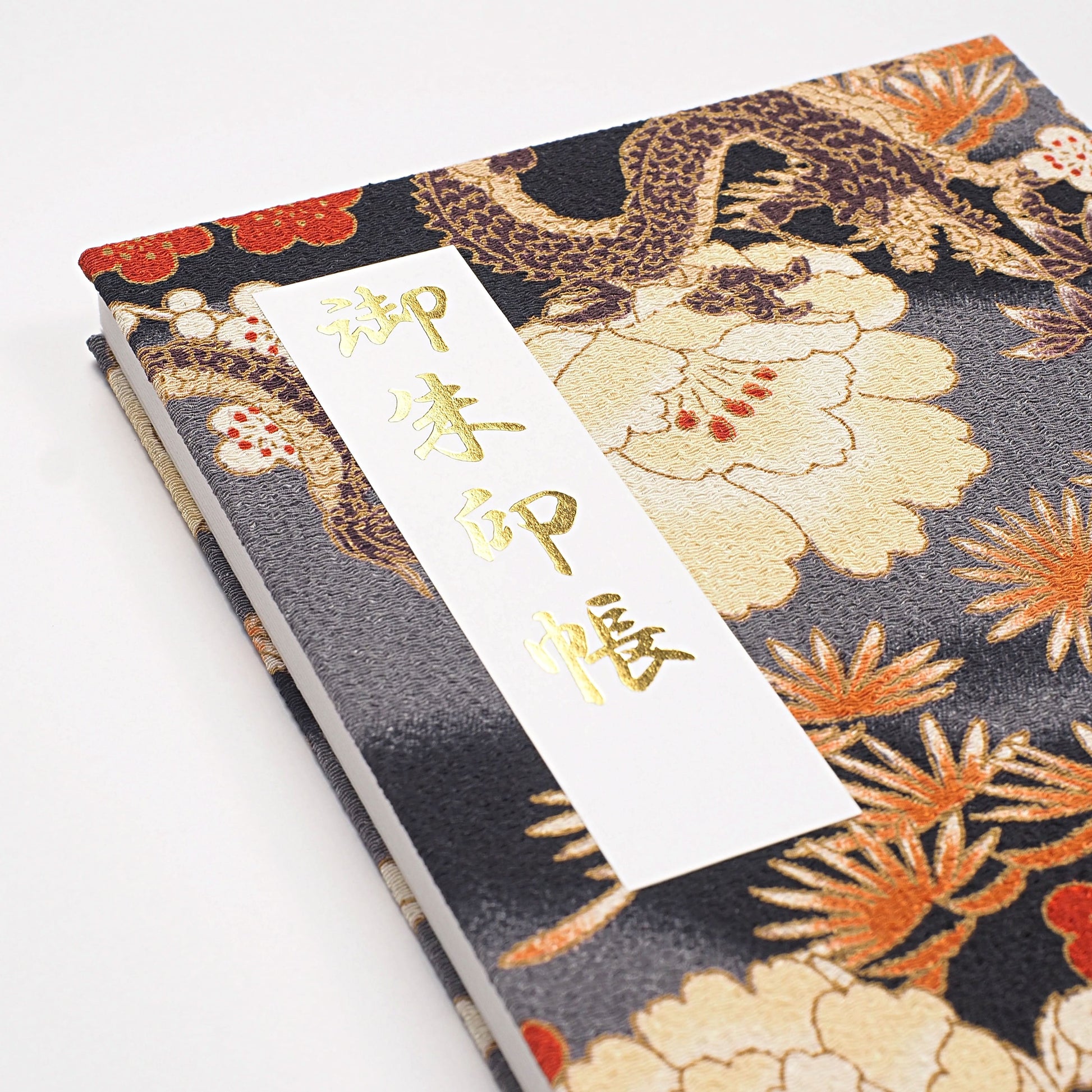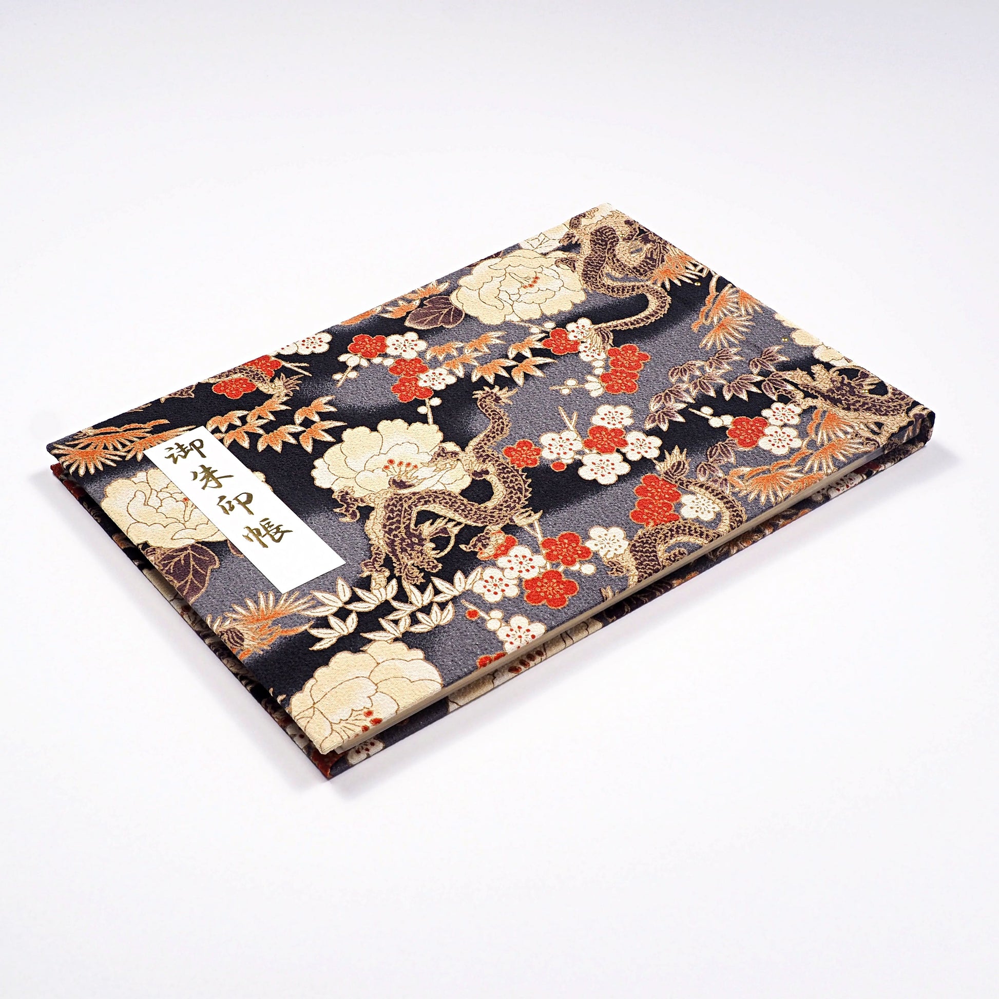 御朱印ホルダー 見開きサイズ 凛然 牡丹龍 黒灰
