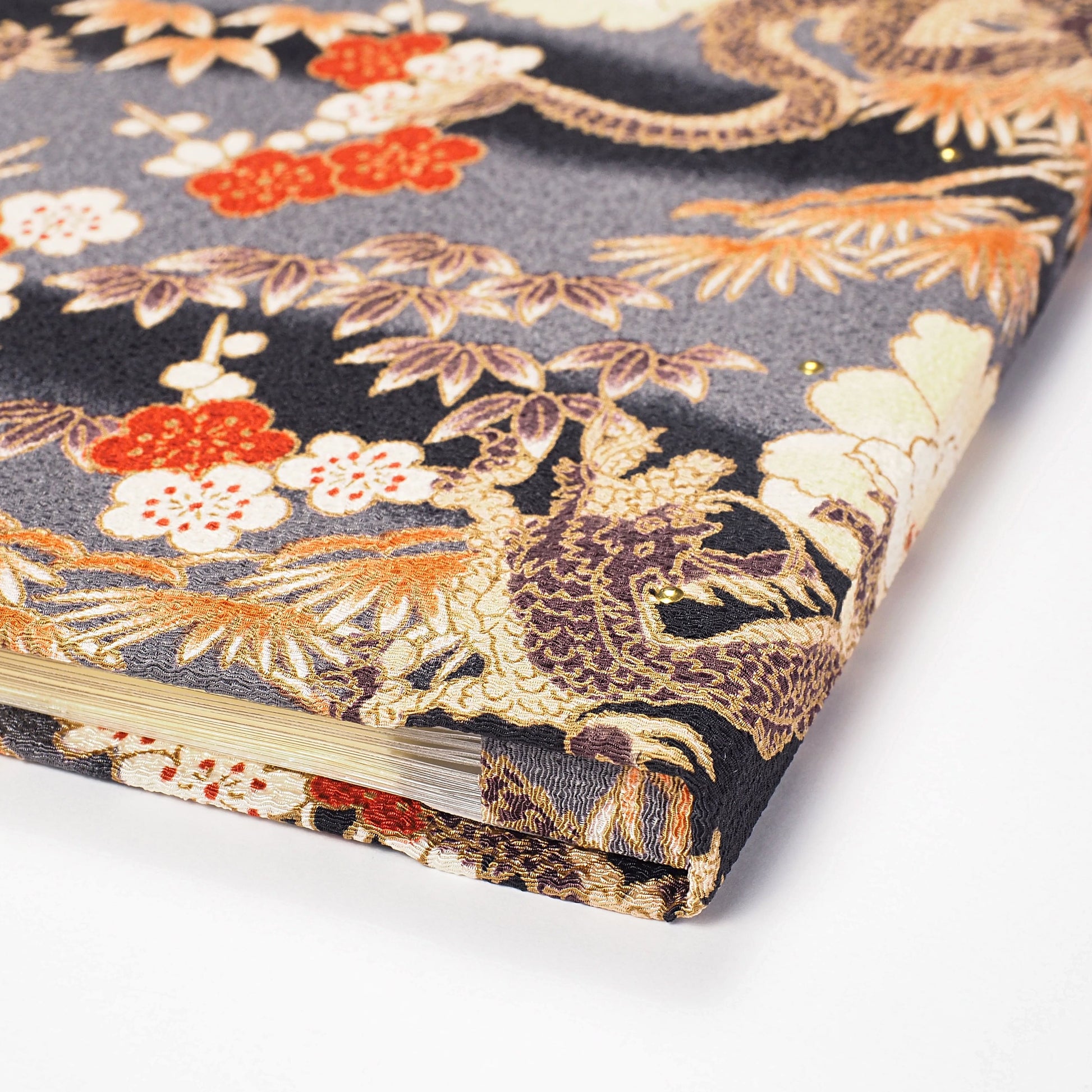 龍と美しい牡丹の花が調和し、豪華絢爛なデザインが魅力的な一冊。