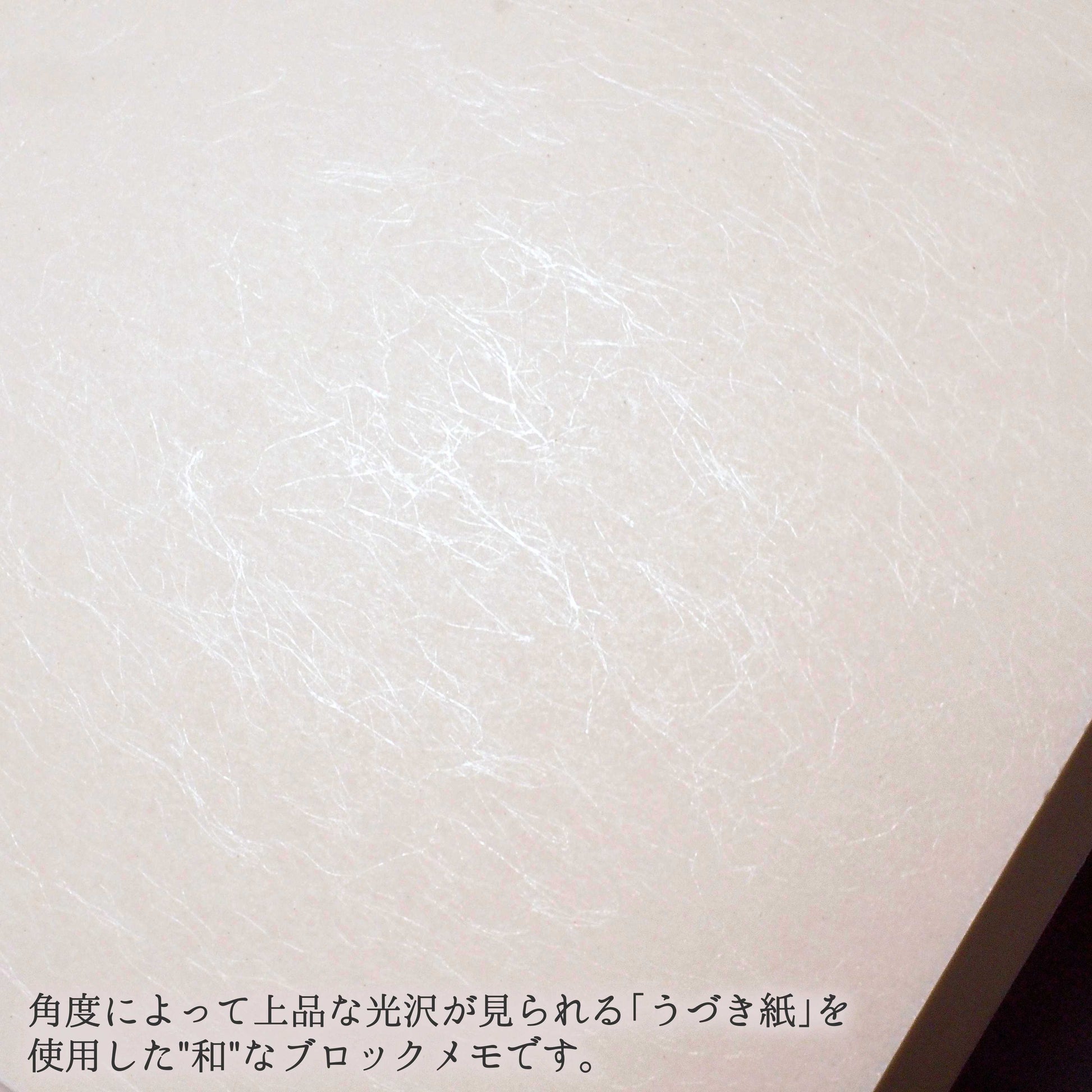 メモ用紙には、流れるような繊細な模様とさらりとした手触りが特徴の和紙【うづき紙】を使用。