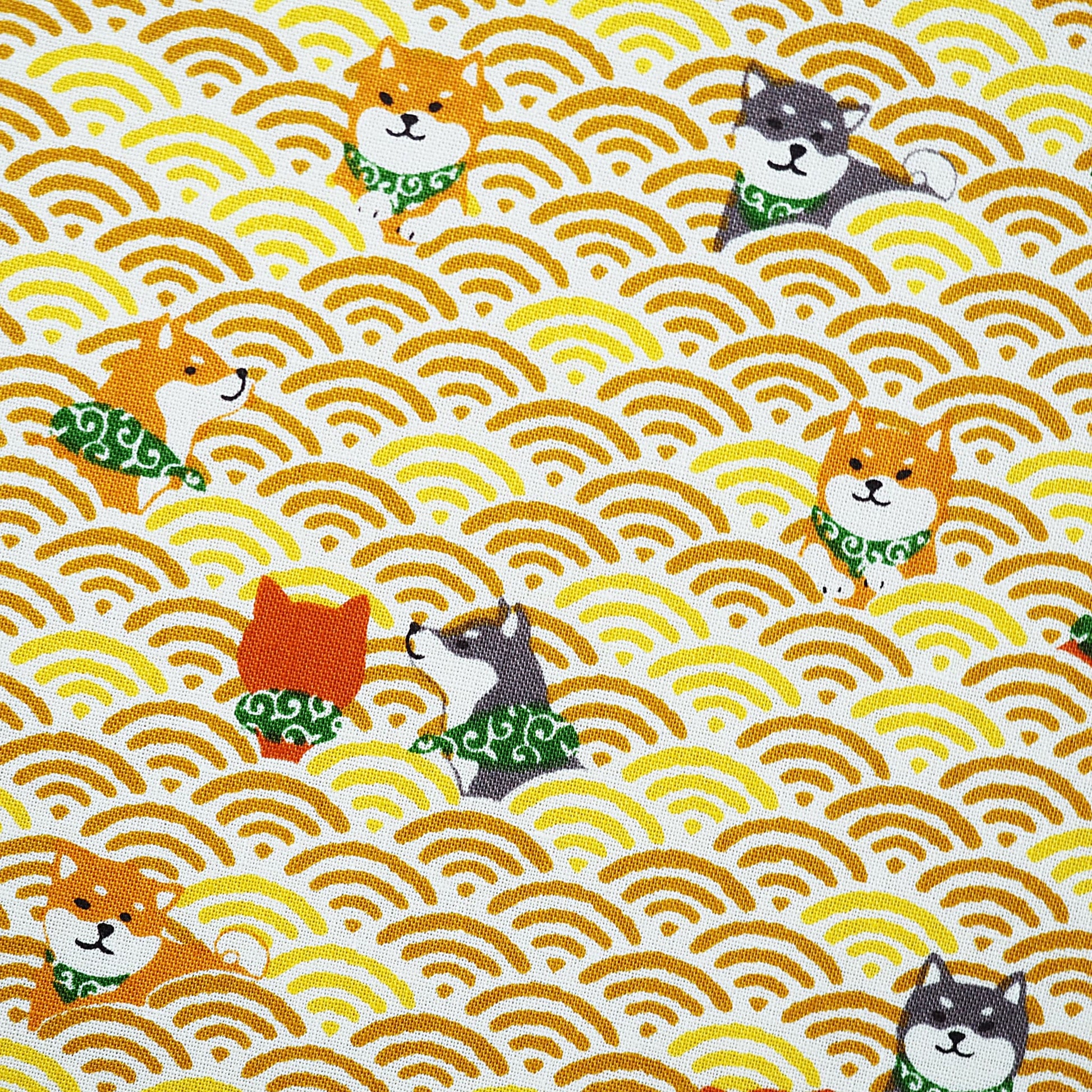 伝統文様・青海波の上で、柴犬たちが気ままに漂っています。