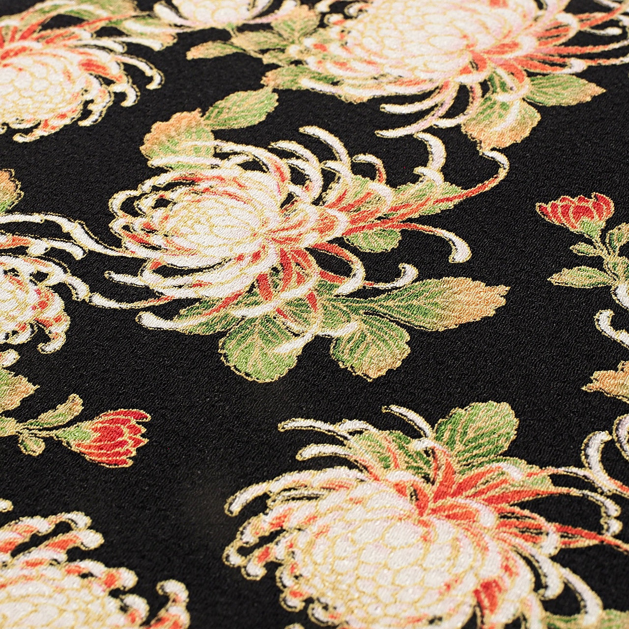 ちりめん生地に凛と咲く大輪の菊が美しい和柄生地です。