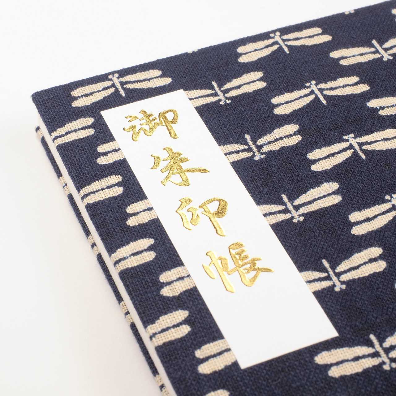 古き良き日本を思わせる、涼やかなとんぼ柄が鮮やかに映える藍染風の御朱印帳です。