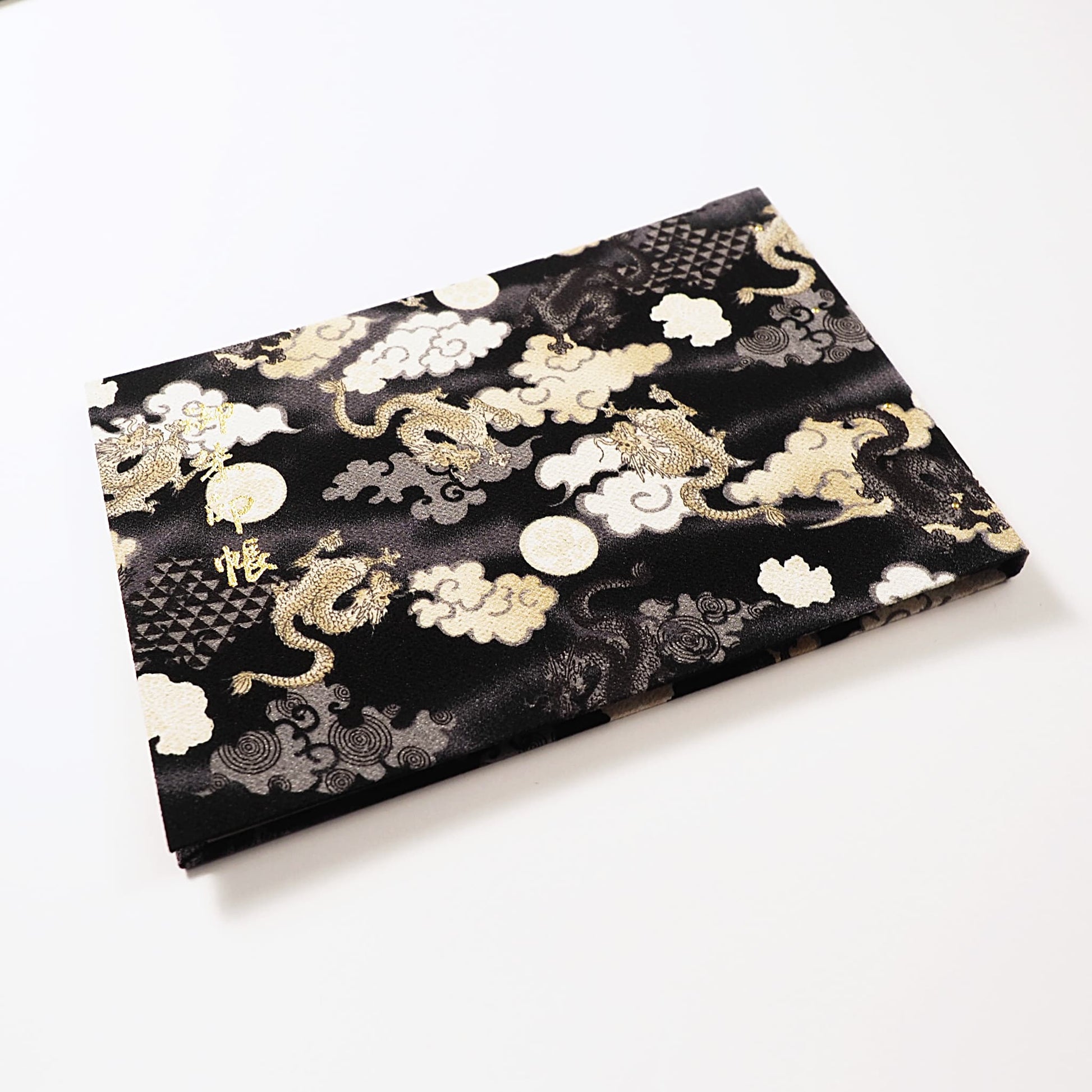 ちりめん素材に龍が描かれた、力強い印象の御朱印帳です。