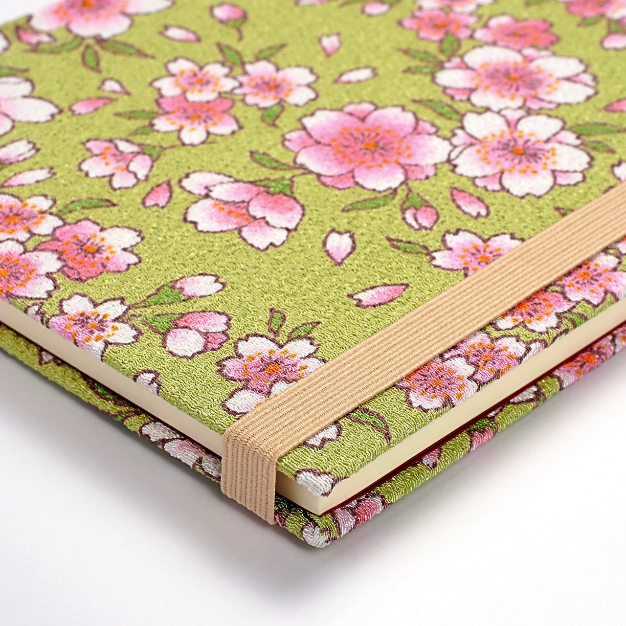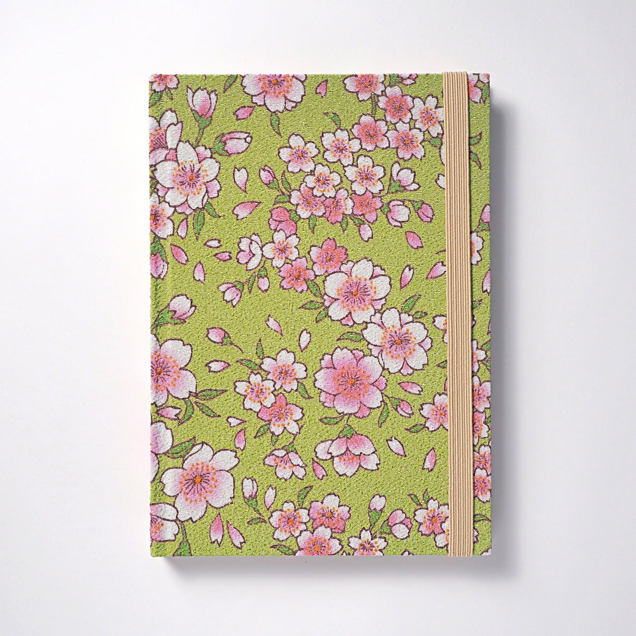 ノートとしての機能性をより高めるゴムバンドは、表紙に合わせたアクセントカラーで、華やかな花柄をさりげなく際立てます。