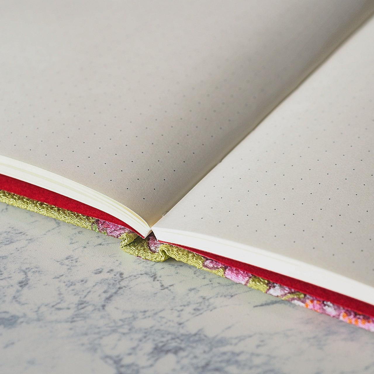 用紙には書き心地も滑らかで裏移りのしにくい、目に優しいクリーム色の書籍用紙を使用。 和×モダンを感じる松葉色のドット方眼が、そっと上品で落ち着いた雰囲気に引き立てます。