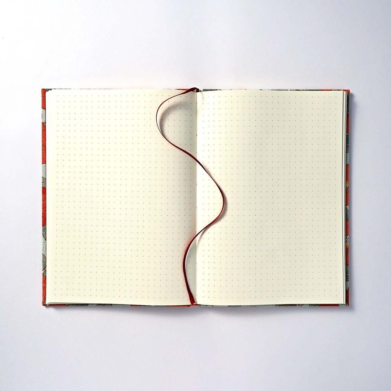 表紙に布生地を使用した、上品な手触りの上製本(ハードカバー)ノート。 丈夫な糸かがり綴じの本文は180度近く開くことができるので、書きやすく読みやすい仕上がりに。
