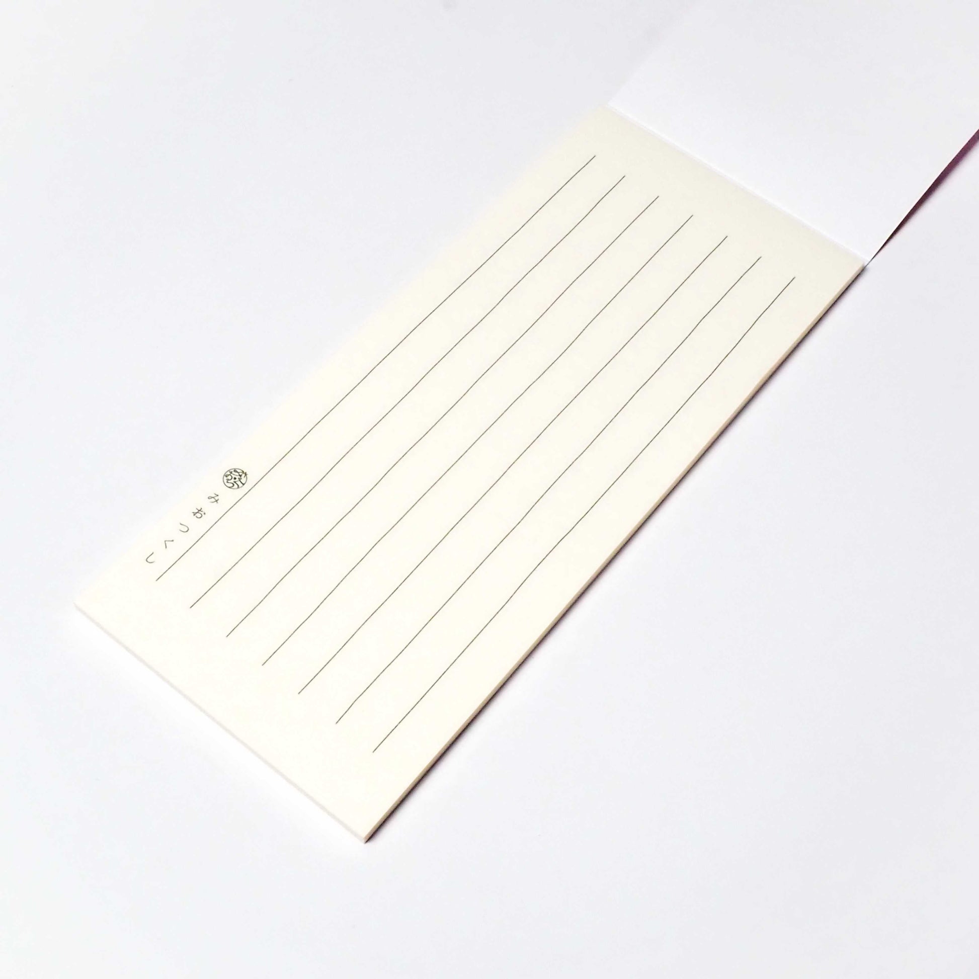 罫線には優しい松葉色を使用しており、 相手への思いやささやかなメッセージをそっと上品で落ち着いた雰囲気に引き立てると同時に、手書きの温かみを伝えることができます。